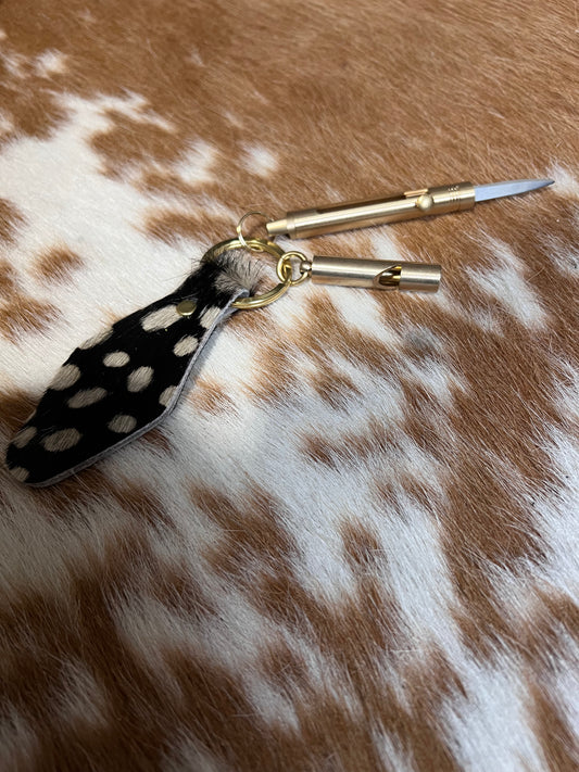 Dark Leopard Hair on Hide Leather Safety Keychain Bundle