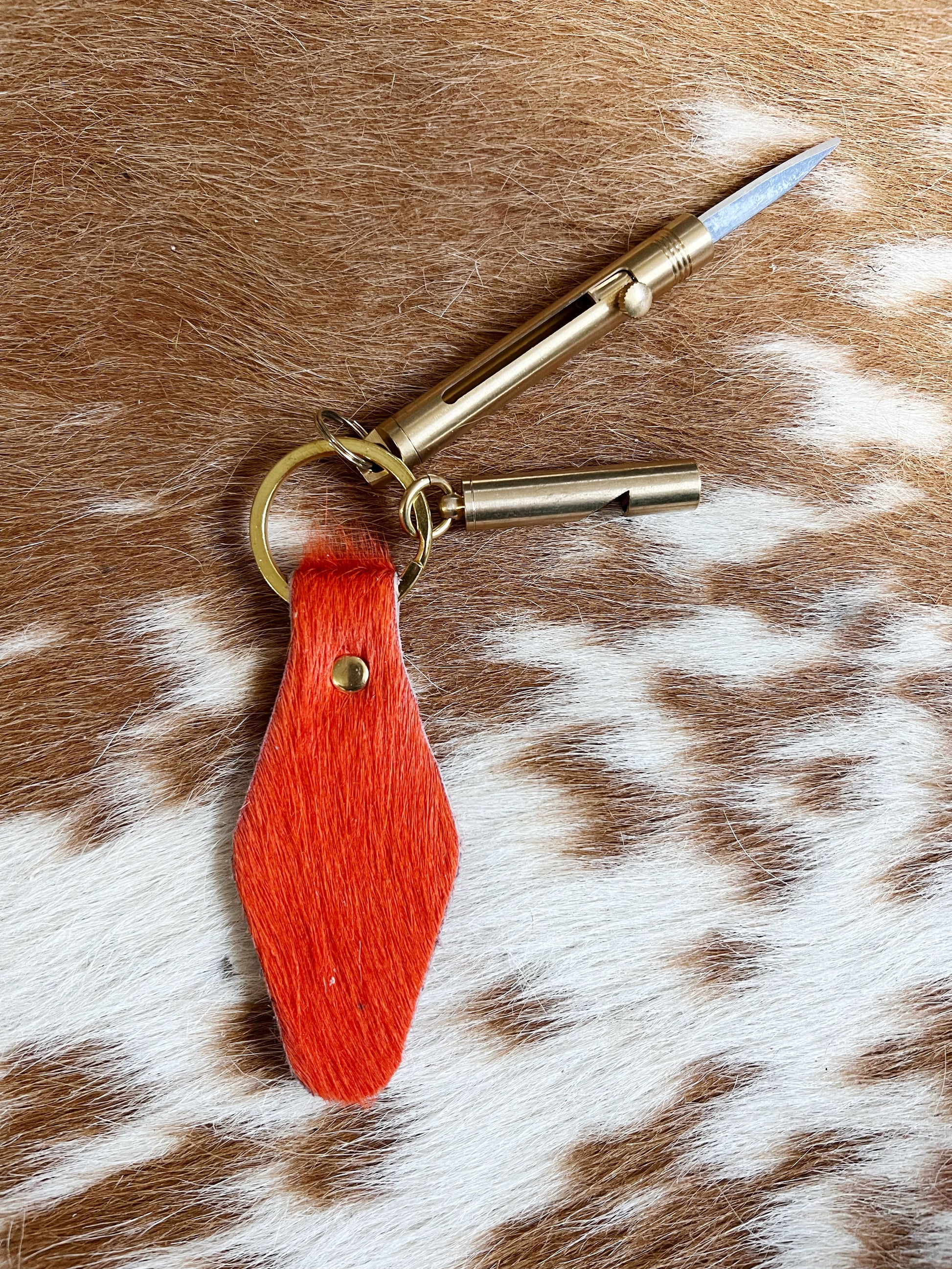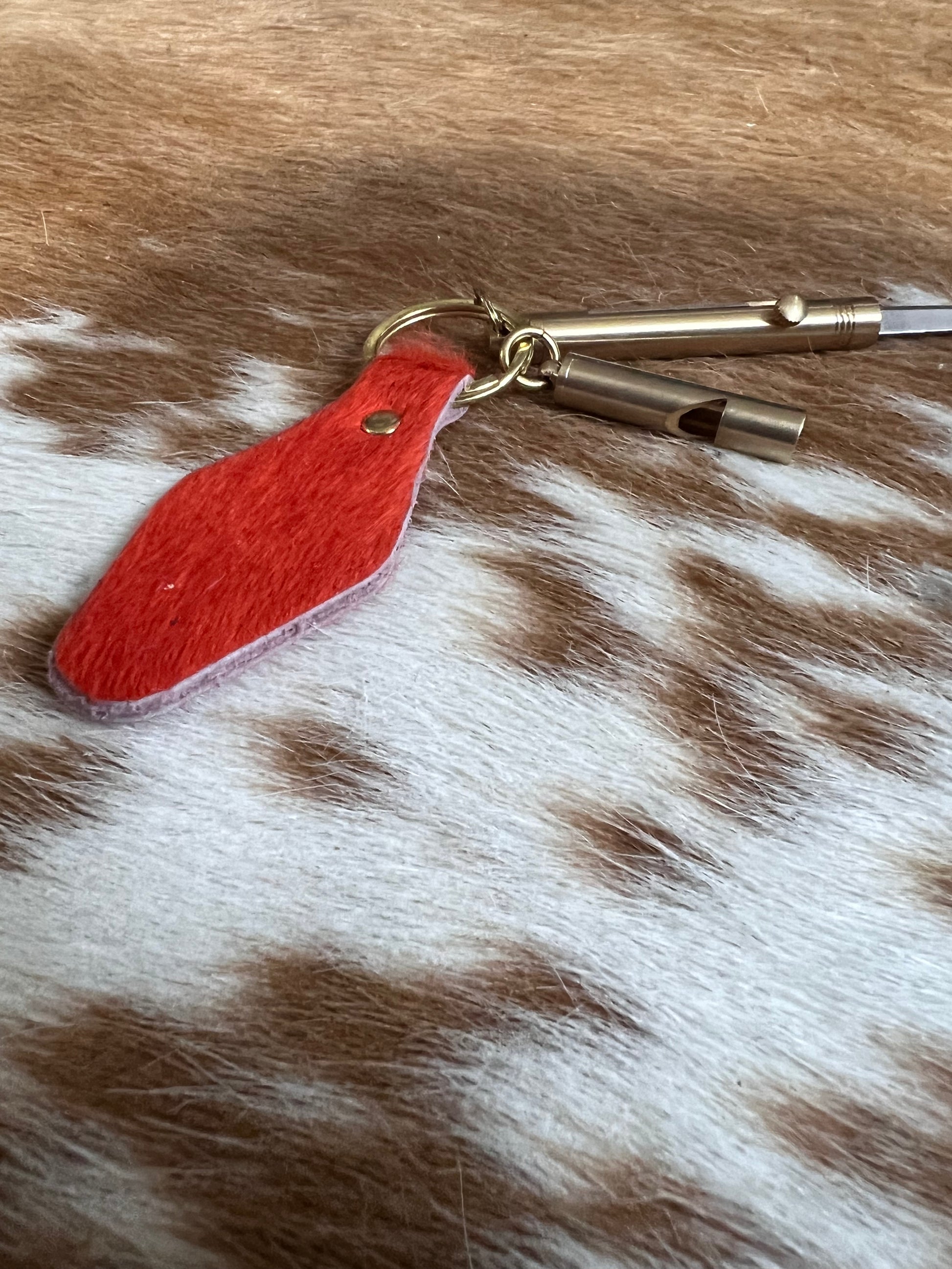 (Almost) Neon Orange Hair on Hide Leather Safety Keychain Bundle