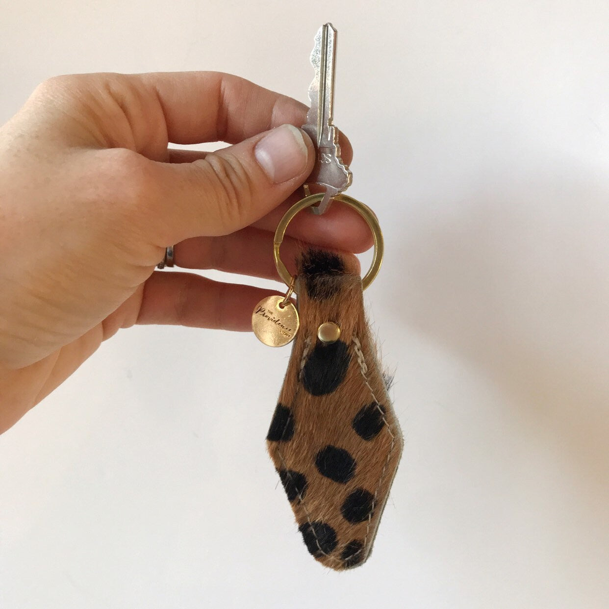 Beige Cheetah Hair on Hide Leather Retro Motel Keychain