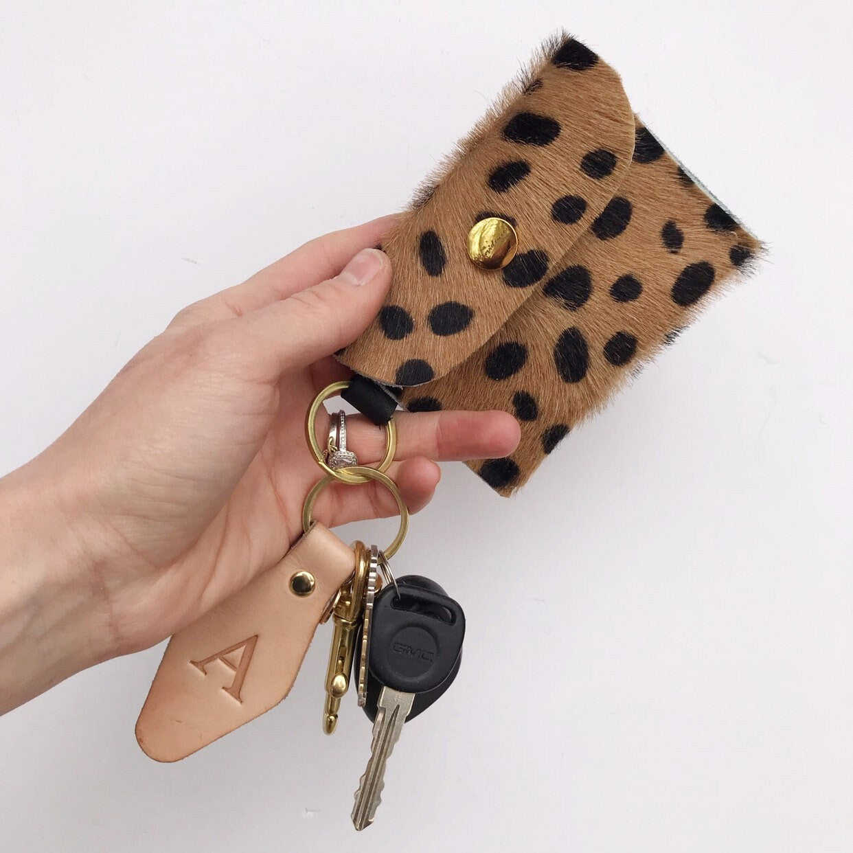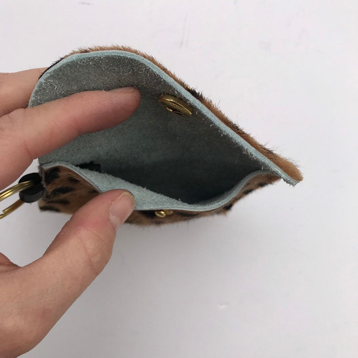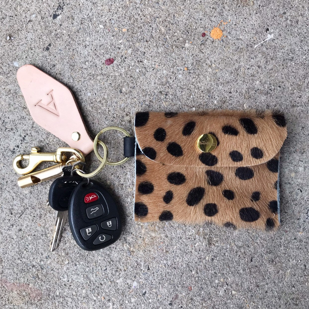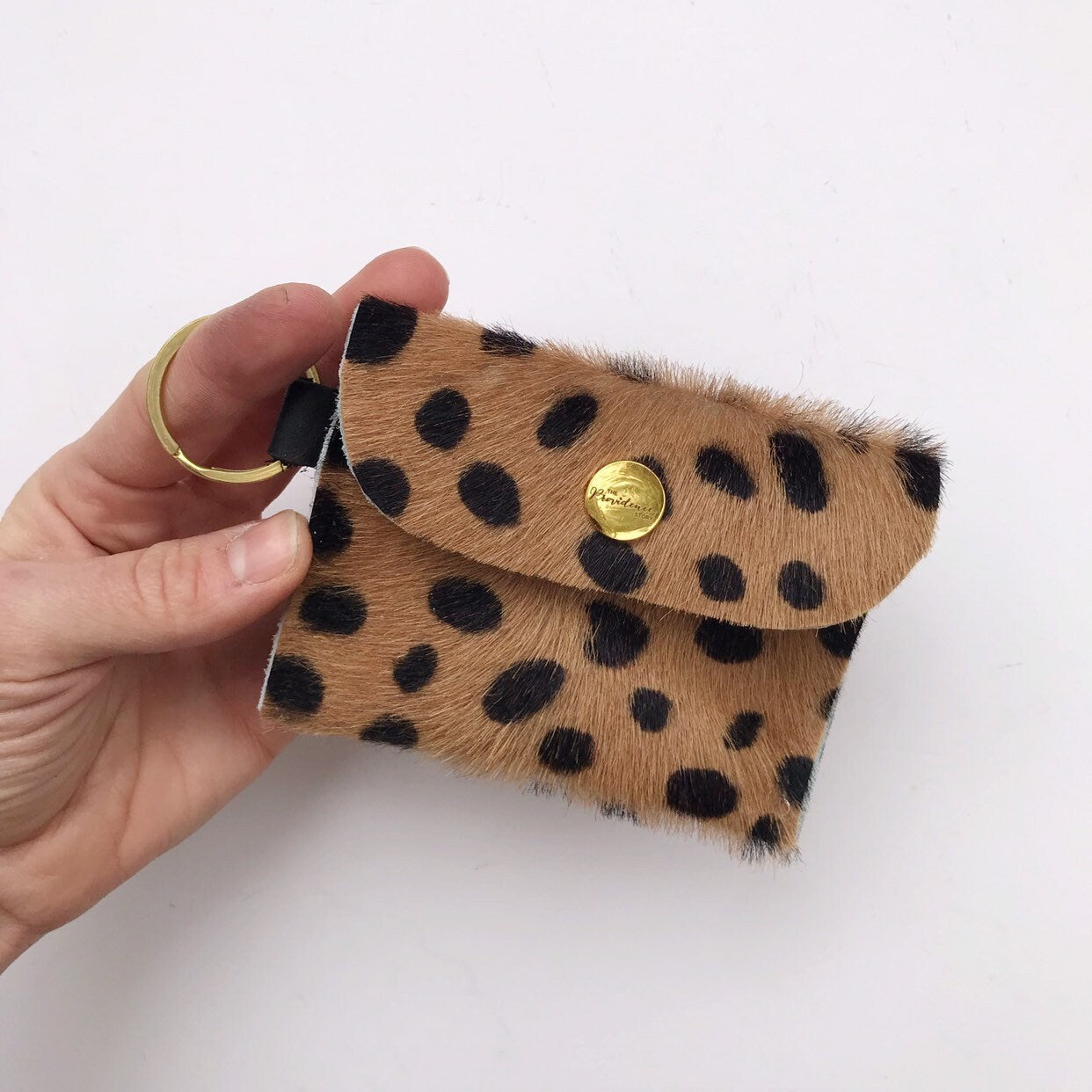 Dark Beige Cheetah Keychain Wallet - Hair on Hide Leather