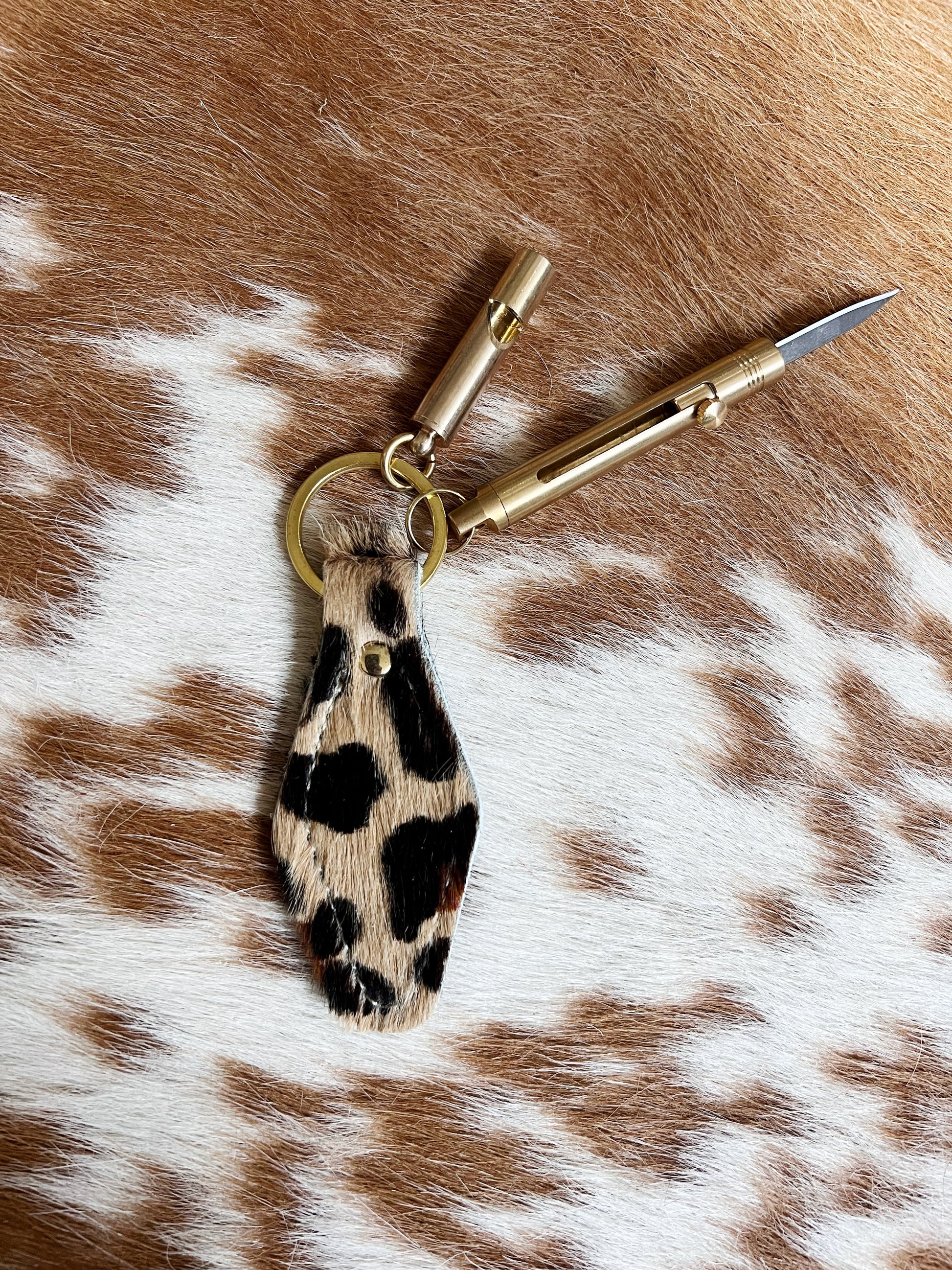 Dark Leopard Hair on Hide Leather Safety Keychain Bundle
