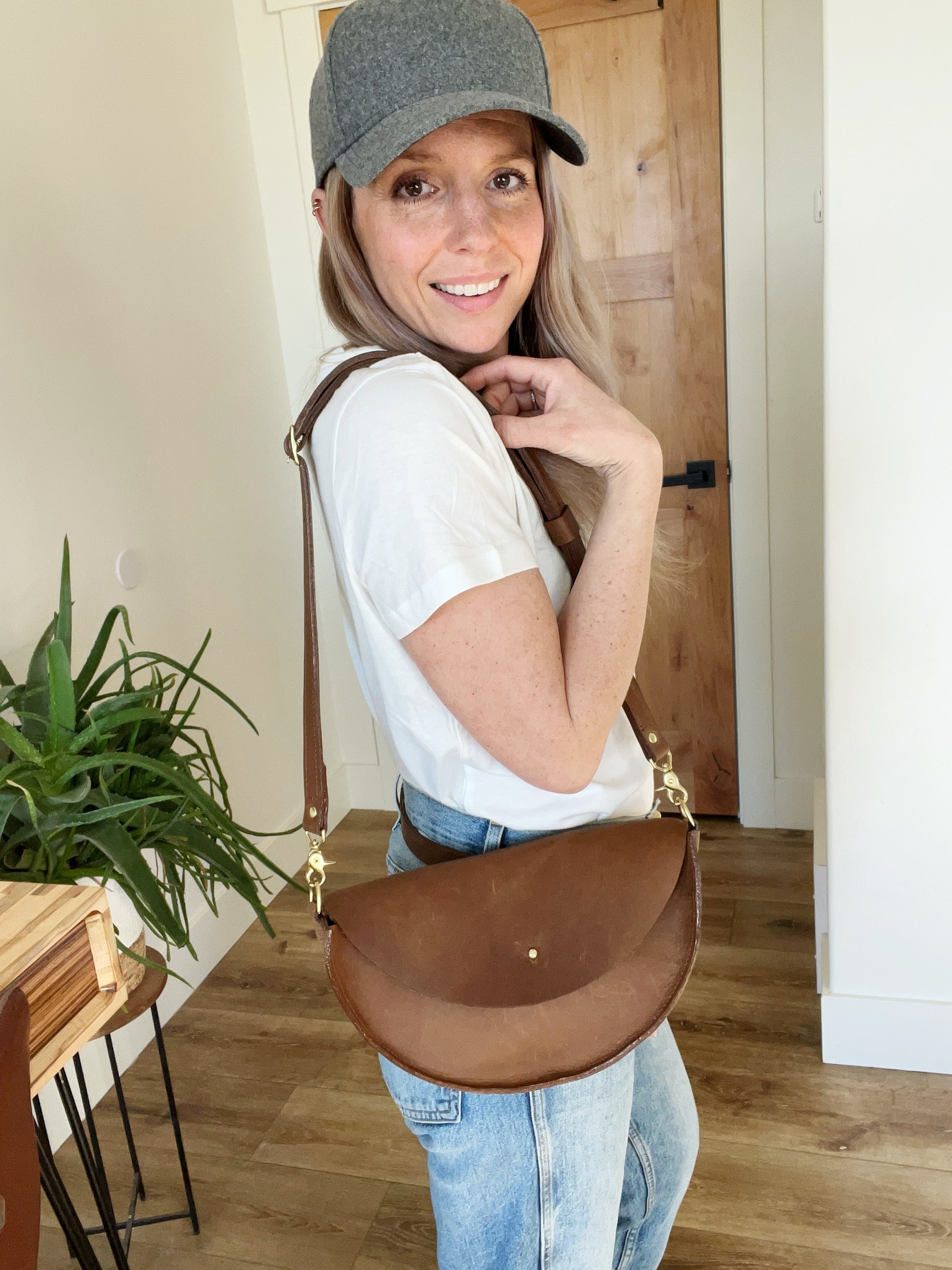 The perfect every day carry! This gorgeous leather bag fits all of your essentials and comes with a fully adjustable strap so you can wear it however you want!