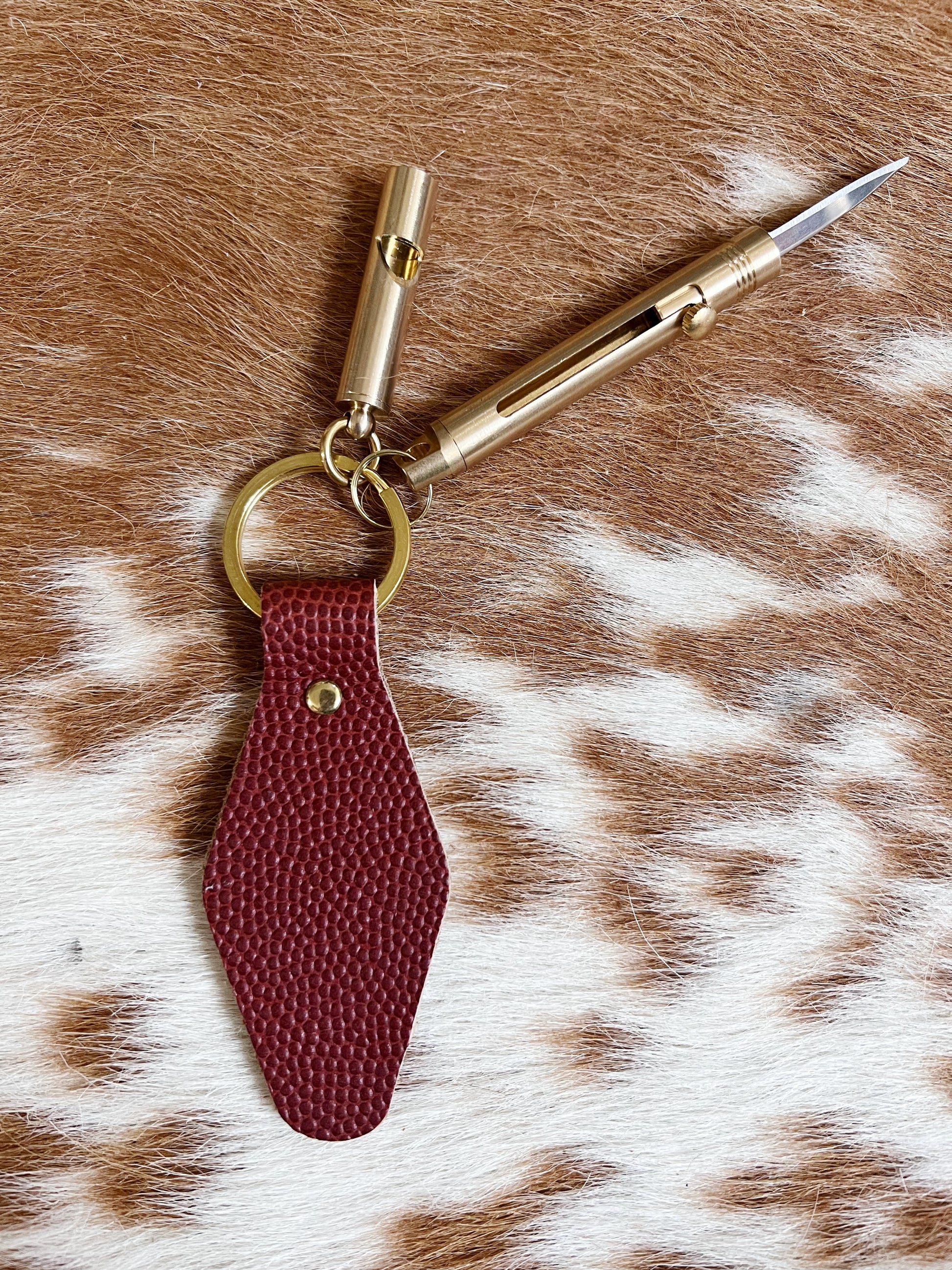 The brass whistle + knife both fly under the radar as self defense tools and look really adorable on your keychain. No bulky plastic junk here!