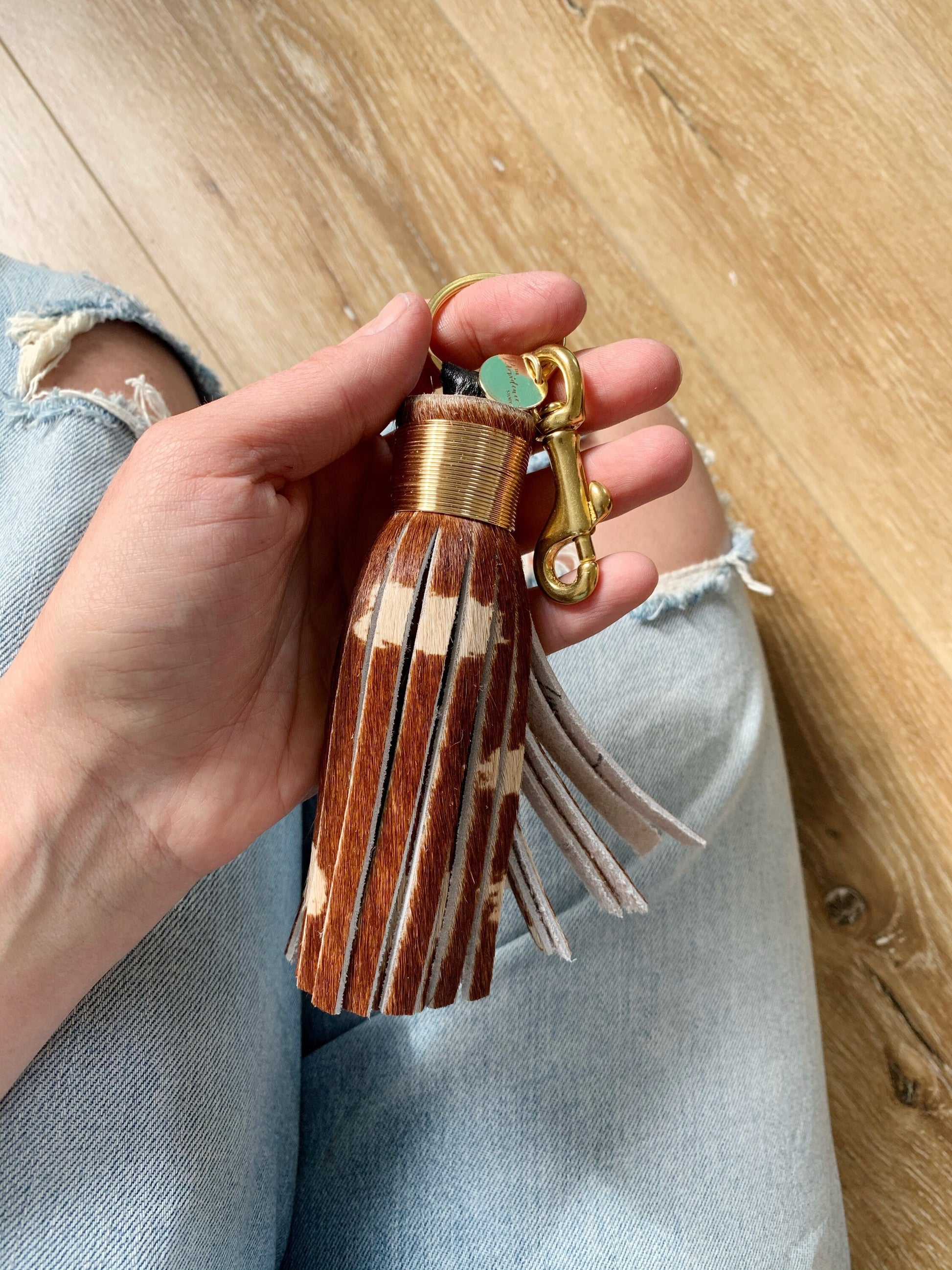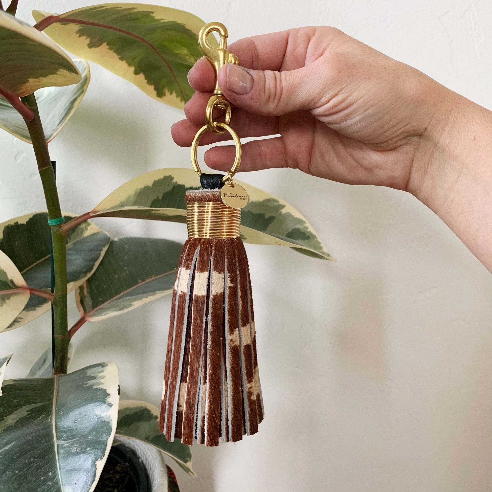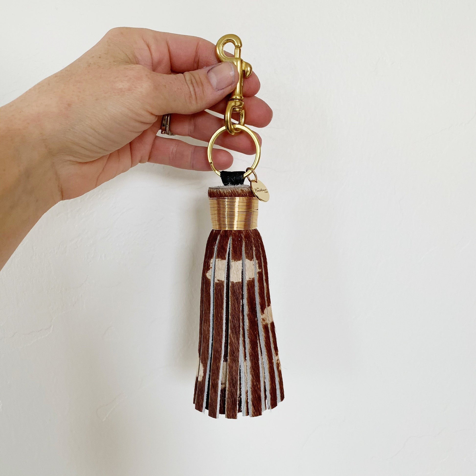 Large Axis Deer Printed Cowhide Tassel Keychain - Hair on Hide Leather