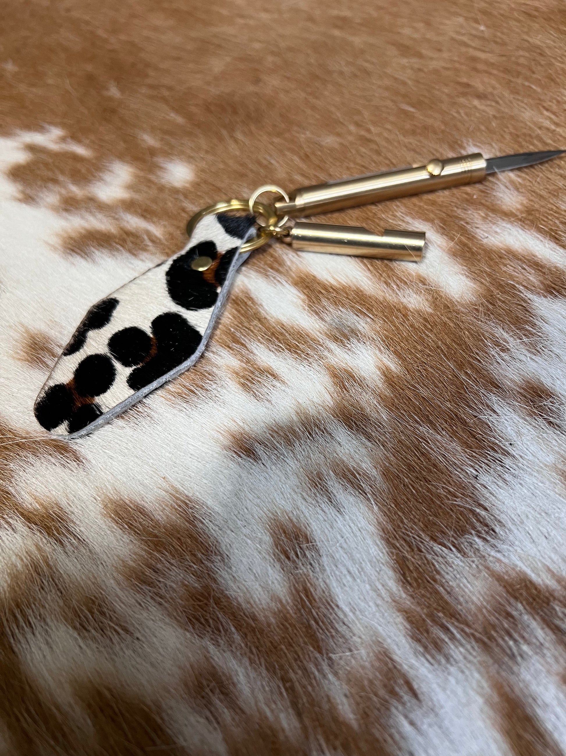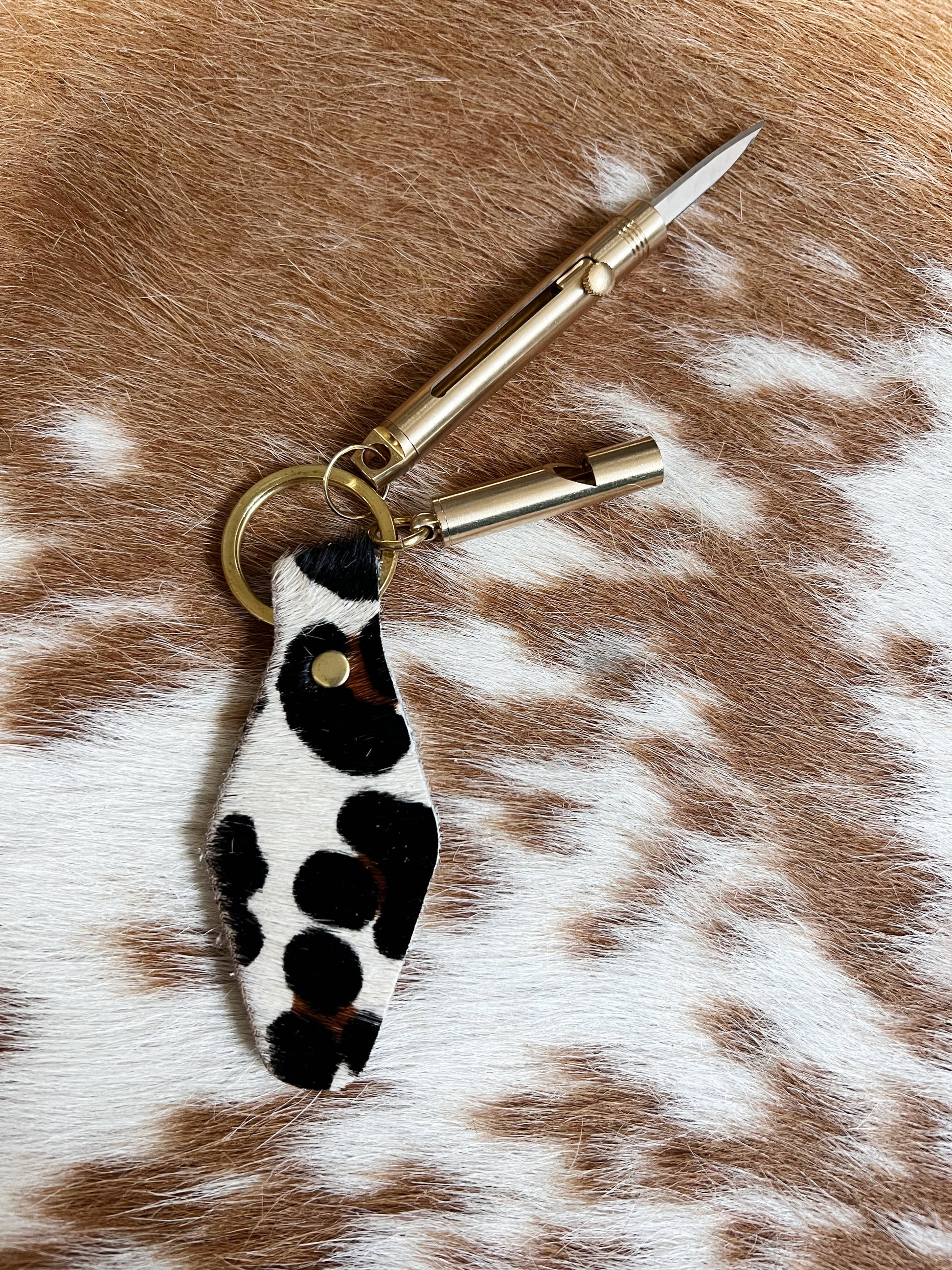 Light Leopard Hair on Hide Leather Safety Keychain Bundle
