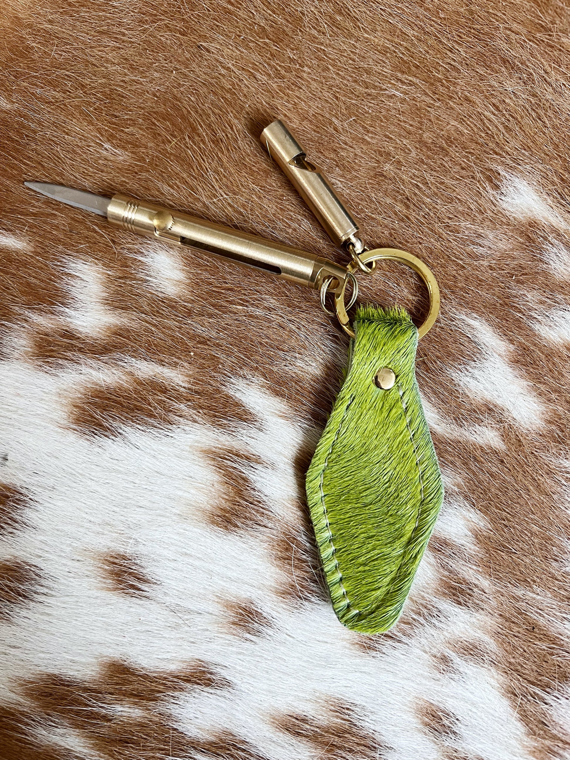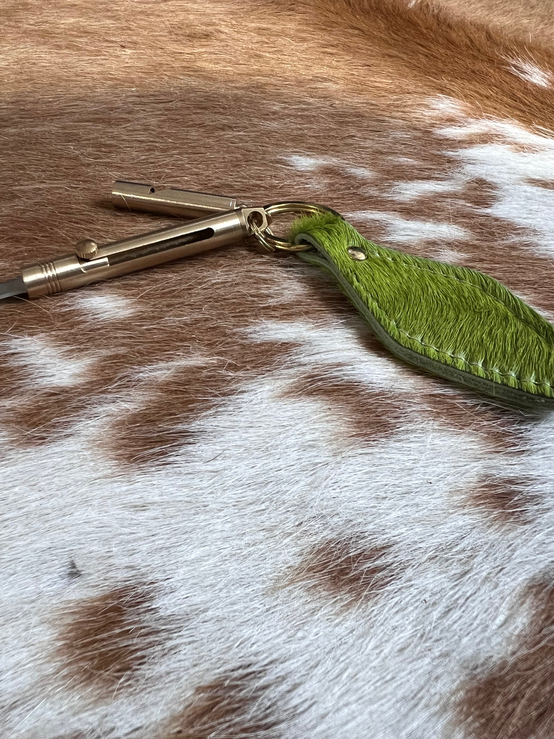 Lime Green Hair on Hide Leather Safety Keychain Bundle