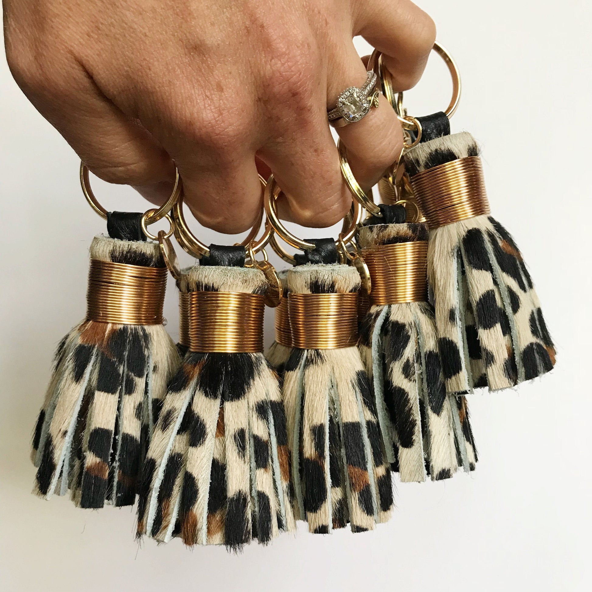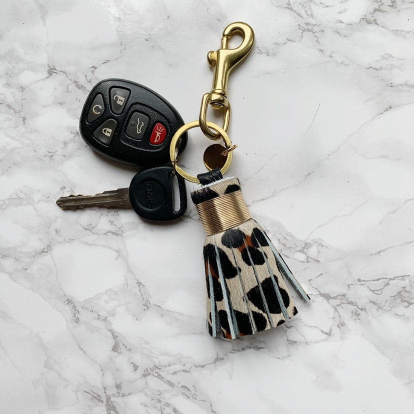 Mini Leopard Hair on Hide Leather Tassel Keychain