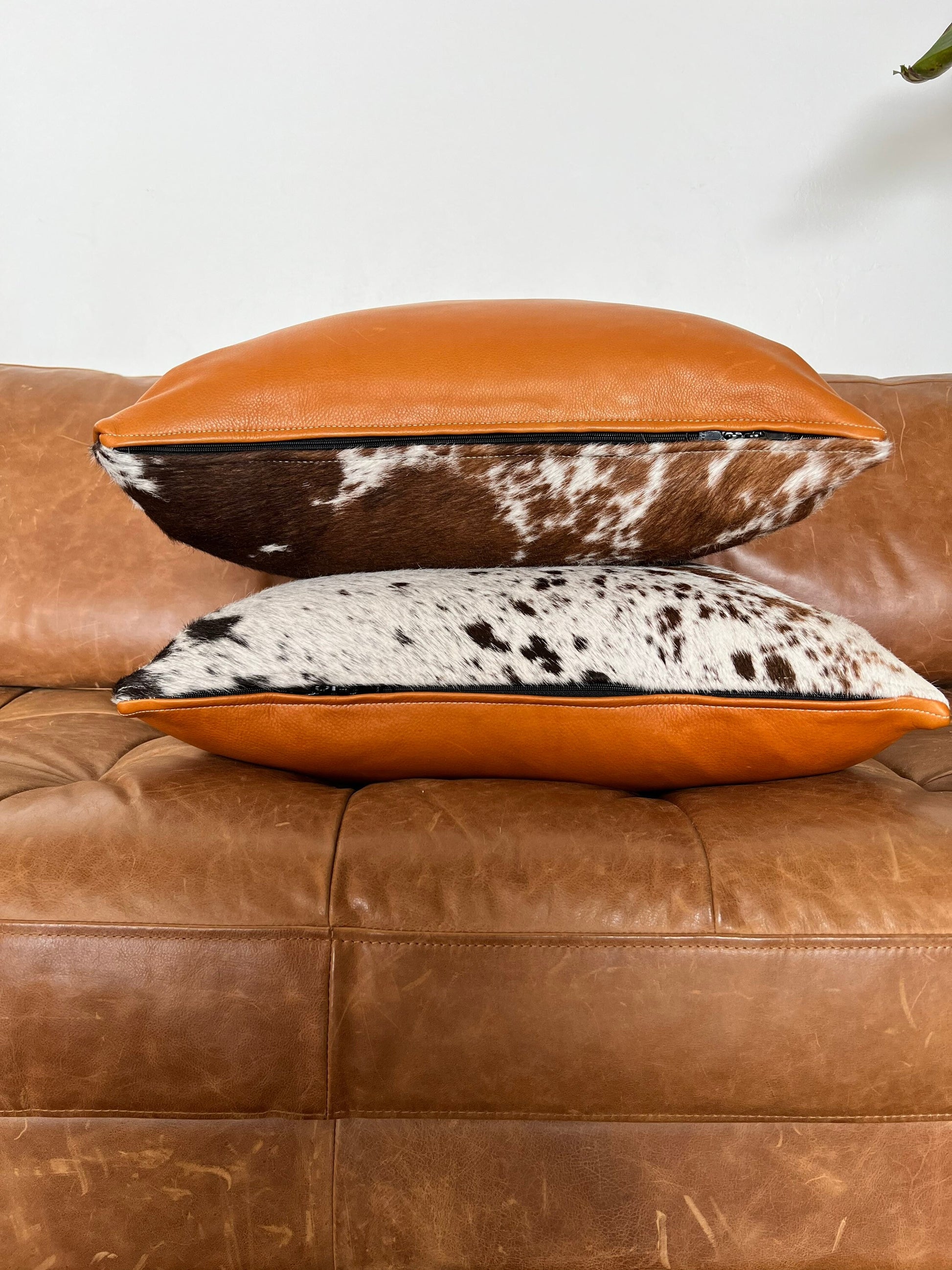 Set of TWO Matching Cowhide Pillows 20x20 - Genuine Top Quality Cowhide and Top Grain Leather