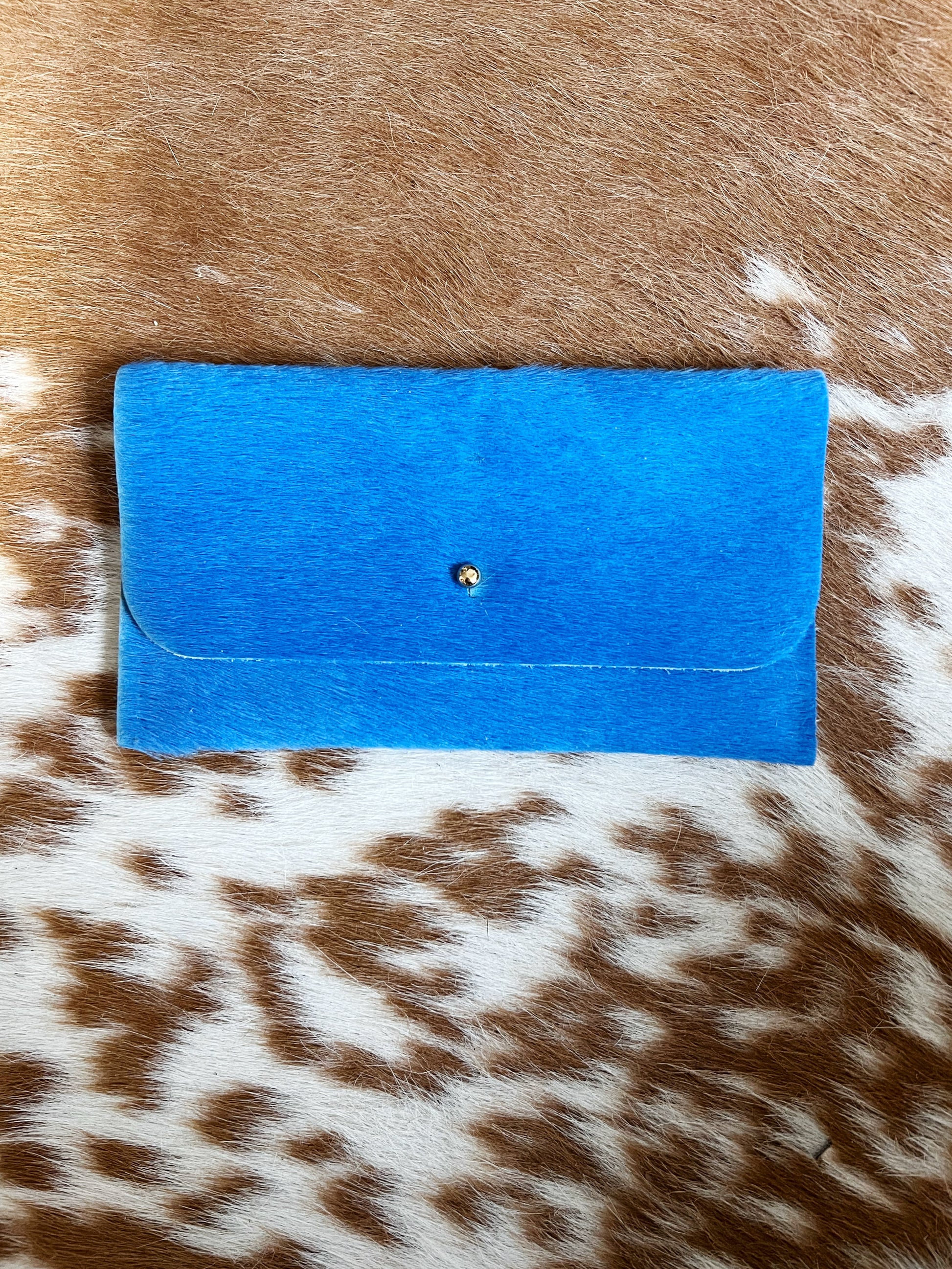 Sky Blue Hair on Hide Leather Smart Phone Wallet/Mini Clutch