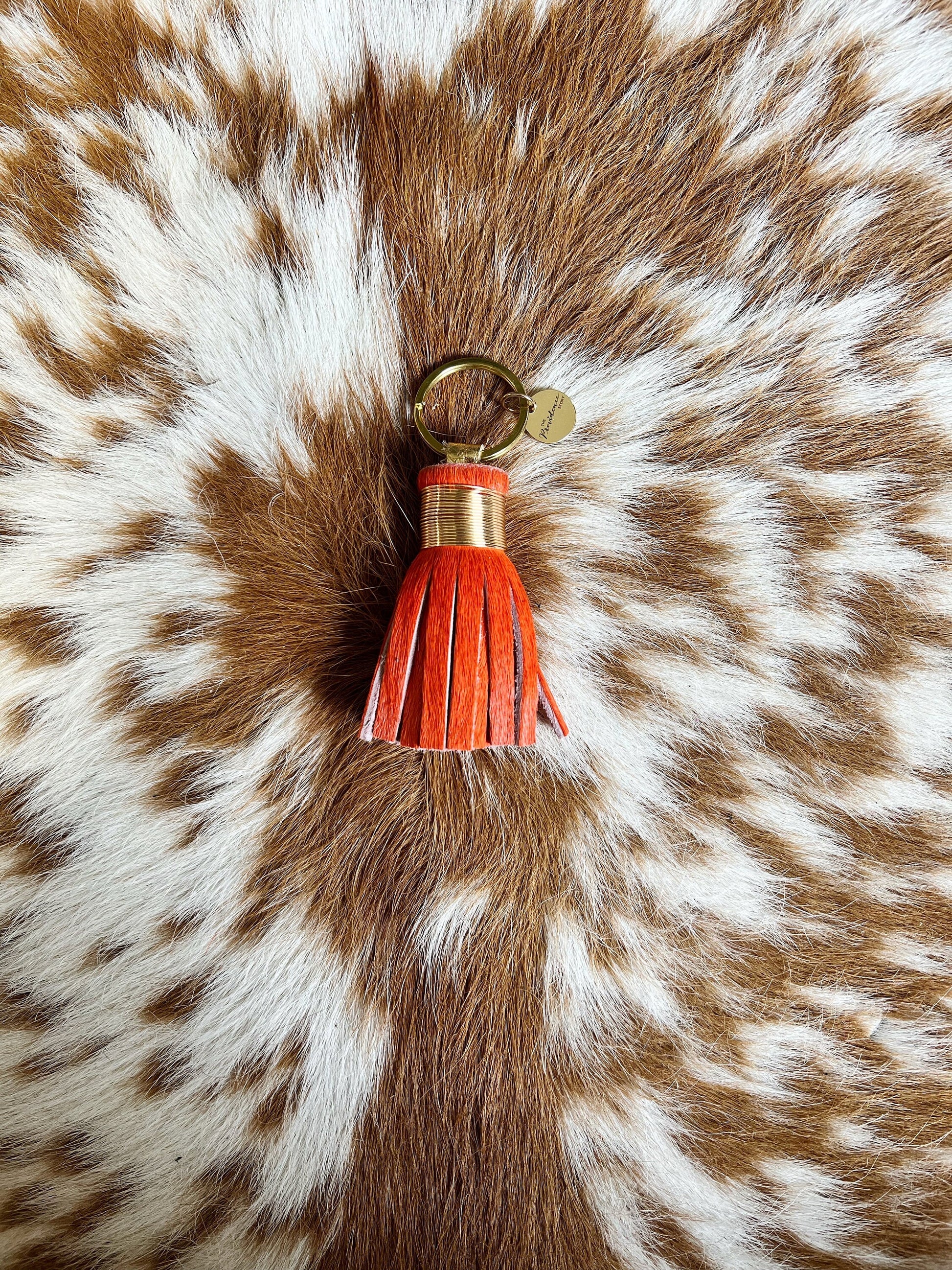 The Original Mini Hot Orange Tassel Keychain - Hair on Hide Leather