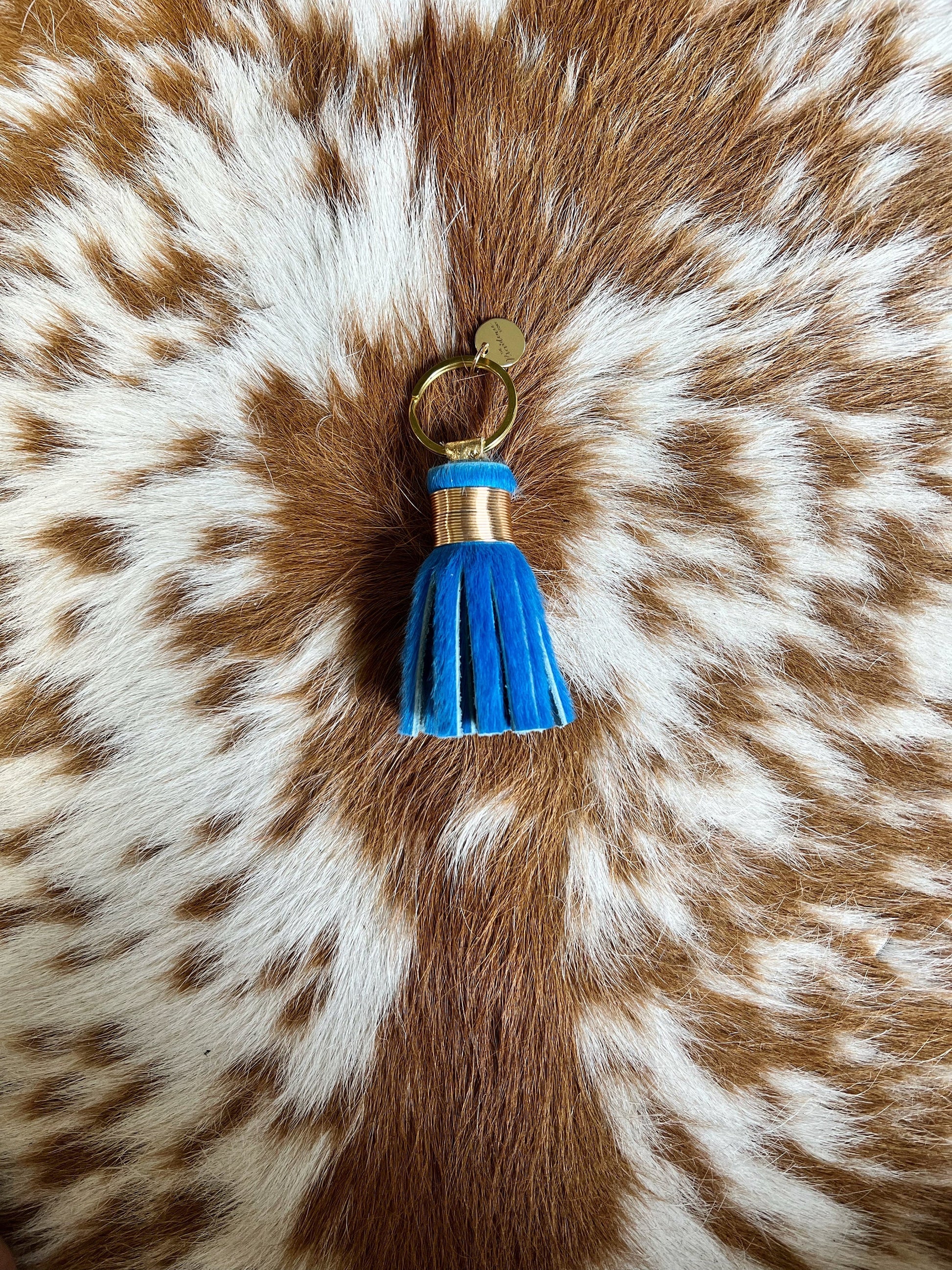 The Original Mini Sky Blue Tassel Keychain - Hair on Hide Leather